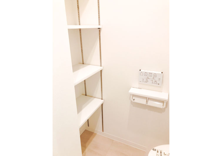 トイレもまた、収納力をとても必要とする場所です。トイレットペーパーのストックや、掃除用品などを別の場所に置くのではなく、トイレ内に置けるととても便利ですね。