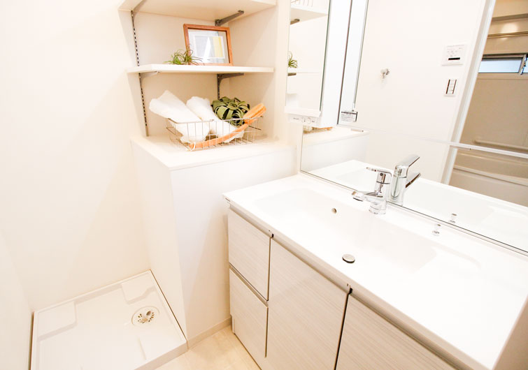 収納スペースを設置して、「意外なほど生活しやすくなった」と喜ぶ人が多いのが、洗面所です。