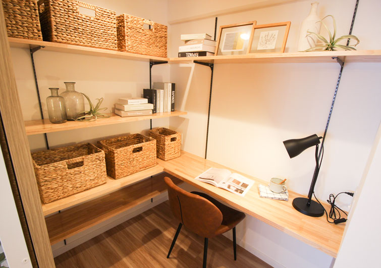 リモートワークをする空間を確保するために、引っ越しをされる方もいますが、このように収納スペースを活用して快適なワーク空間を確保する方法もあるんですよ!