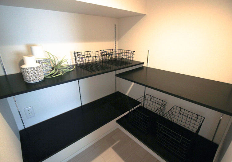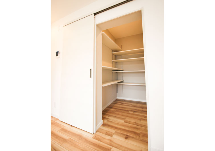 キッチンの近くにパントリーを設置すると、大容量の食品をしまいやすく取り出しやすい形で収納できます。家事時間が短縮でき、食事作りが楽しくなりますね。