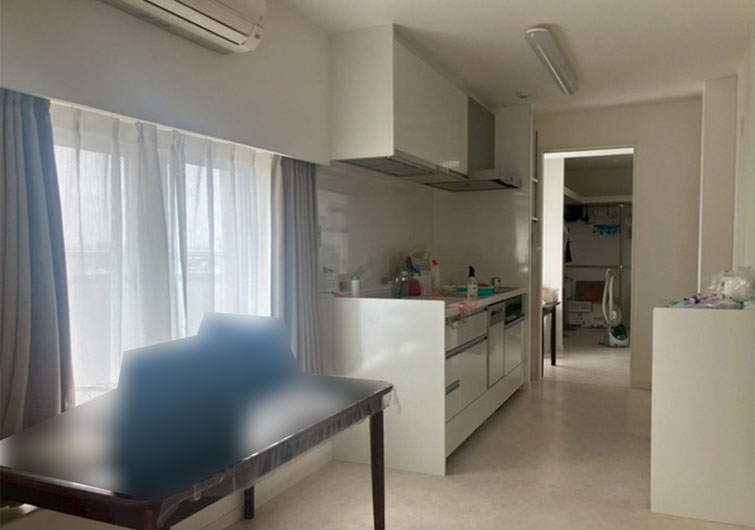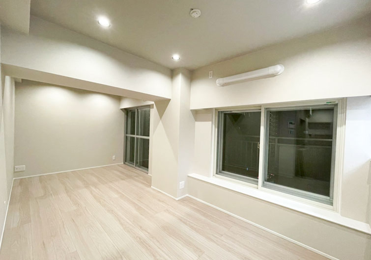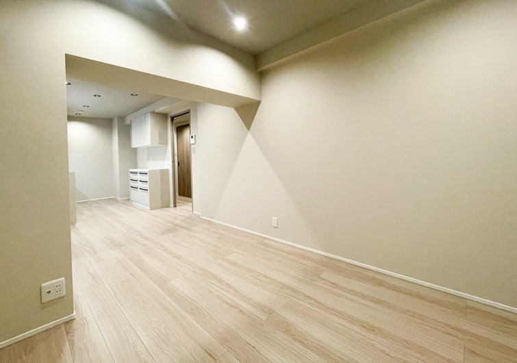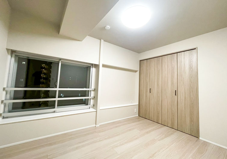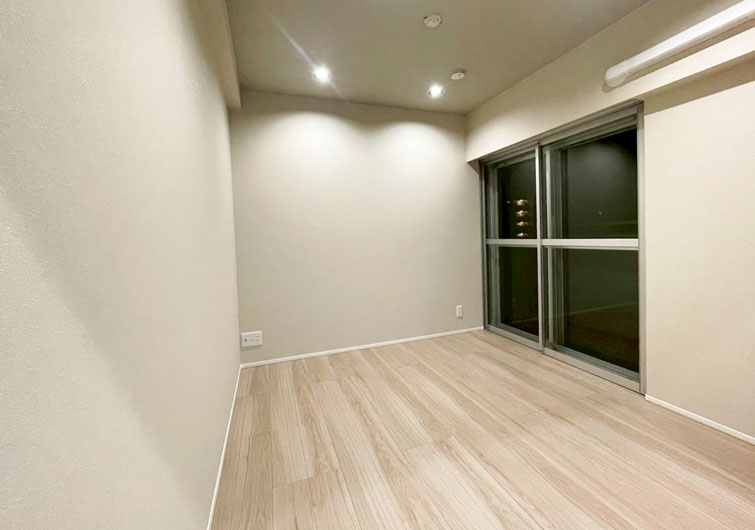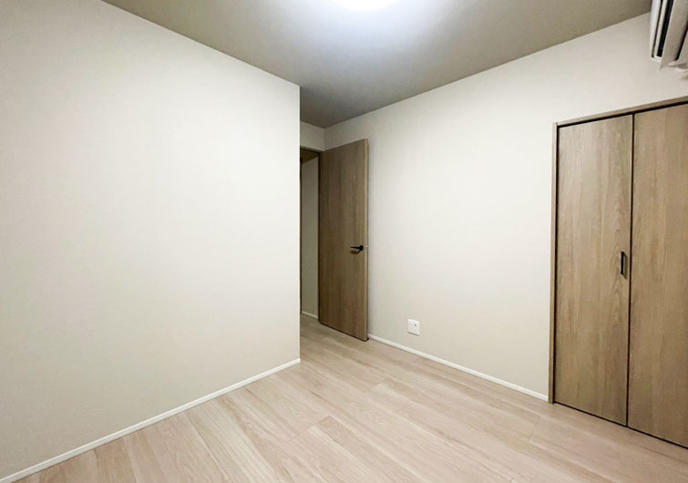 洋室(以前はウォークインクローゼットとして使用していたお部屋)とキッチンの間に、間仕切り壁を新設しました。 キッチンと隣接する空間をしっかり区切ることで、生活動線がより明確になり、お部屋としての使い勝手も向上しました。 また、壁を設けることでキッチンからの音や匂いが軽減され、快適にお過ごしいただける空間へと生まれ変わっています。