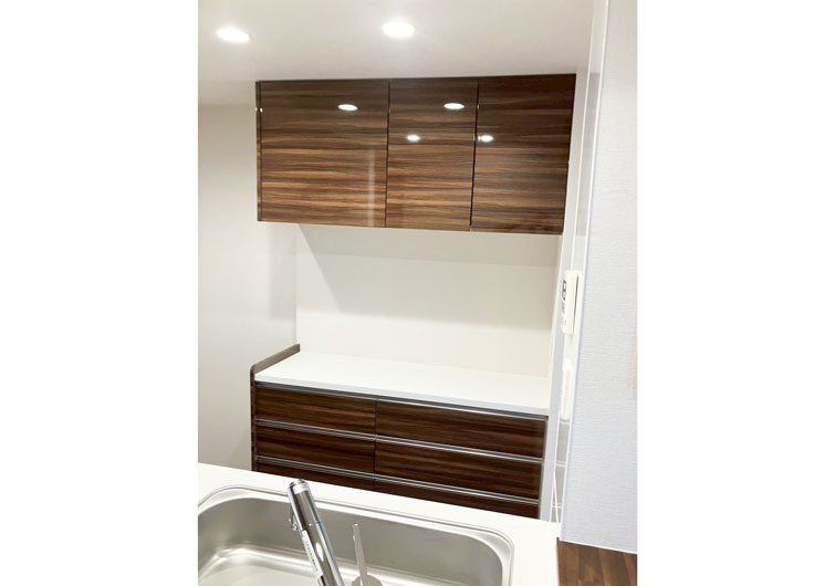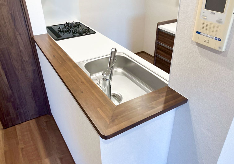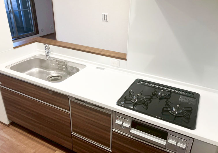 今回の施工では Takara standard「グレーシア」シリーズ を採用しました。 木のぬくもりを感じられる木製キッチンにステンレス製のシンプルなZシンクを組み合わせました。 業界トップクラスの静かさで、約35㏈の静音仕様を実現。日々の調理や片付けも快適です。 さらに、キッチンパネル・レンジフード・ガスコンロには 高品位ホーロー を使用。表面はガラス質で、熱やキズ、水・湿気に強く、キッチンまわりに最適な素材です。 油汚れもサッと拭くだけで簡単に落ち、頑固な汚れもあとを残さずキレイに。また、焦げ付き汚れをこすっても、色褪せやはがれの心配がありません。 毎日使う場所だからこそ、お手入れが簡単で長く美しさを保てるキッチン。機能性とデザイン性を両立した空間に仕上がりました。