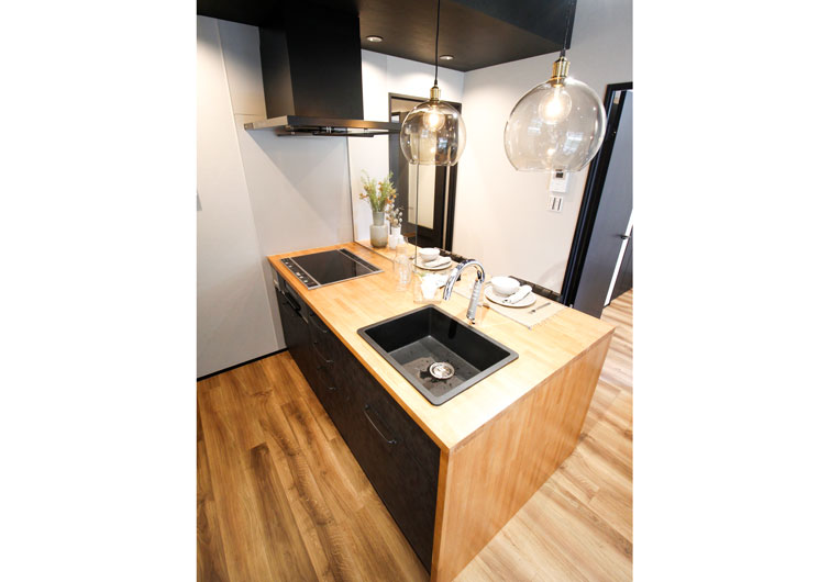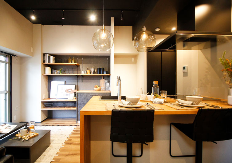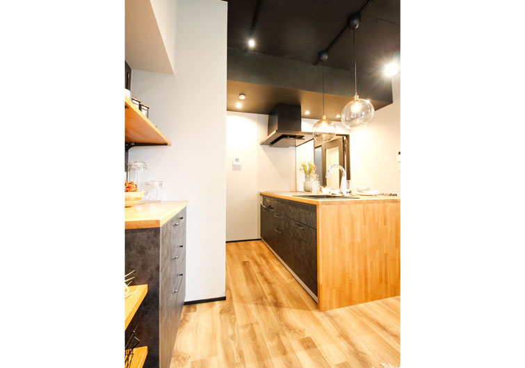 木目調やアイアンのダクトレールなど異なる素材感がお部屋のポイントとして映えます。