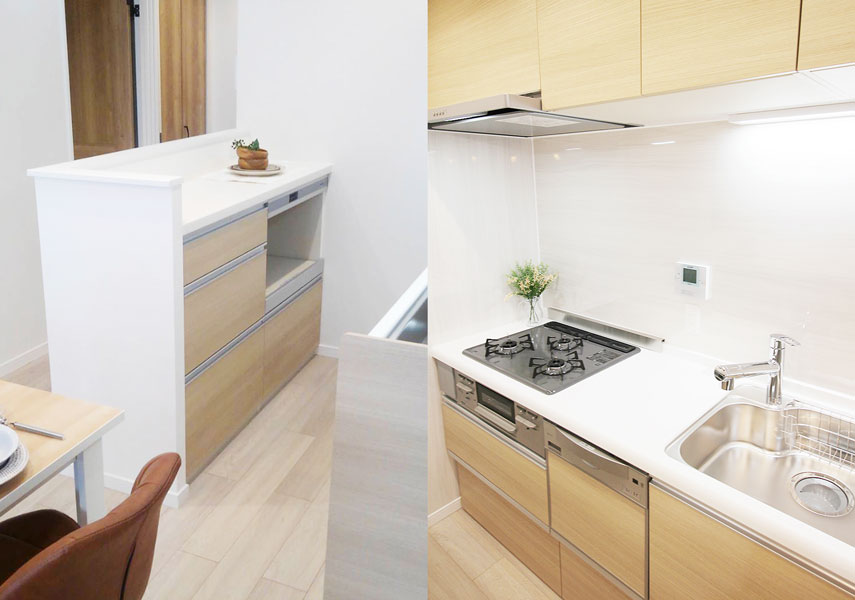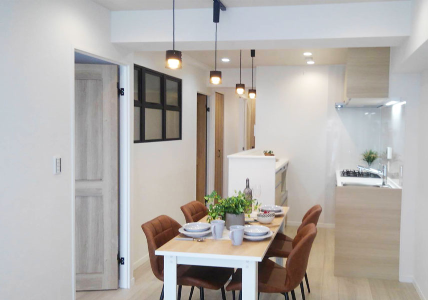 デコマドを取り入れる フルリフォームの施工事例築31年(足立区栗原) 窓がない居室には、リビングとの境にデコマドを取り入れました。 窓枠と照明のレールを黒で統一、扉の取っ手も黒に合わせました。 予算 - 面積 57.75㎡ リフォーム費用 間取り 3LDK 期間 家族構成 - デコマド 間取りの都合で窓が設けられない居室は、空気もこもりがちでした。 リビングとの間にデコマドを取り付け、風や光の通り道を確保。 三か所取り付けているので、調整もしやすいです。 キッチンカウンター コンパクトな中にも使いやすさを重視したキッチンには、カウンターを新設しました。 ちょっとした台があるだけで料理のしやすいキッチンに。引き出し収納で出し入れもしやすく食器や調理器具も簡単に、たくさん置くことができるようになりました。 ビフォーアフター ※画像をクリックすると拡大します 間取り BEFORE AFTER 一覧に戻る