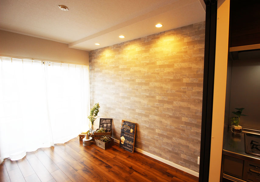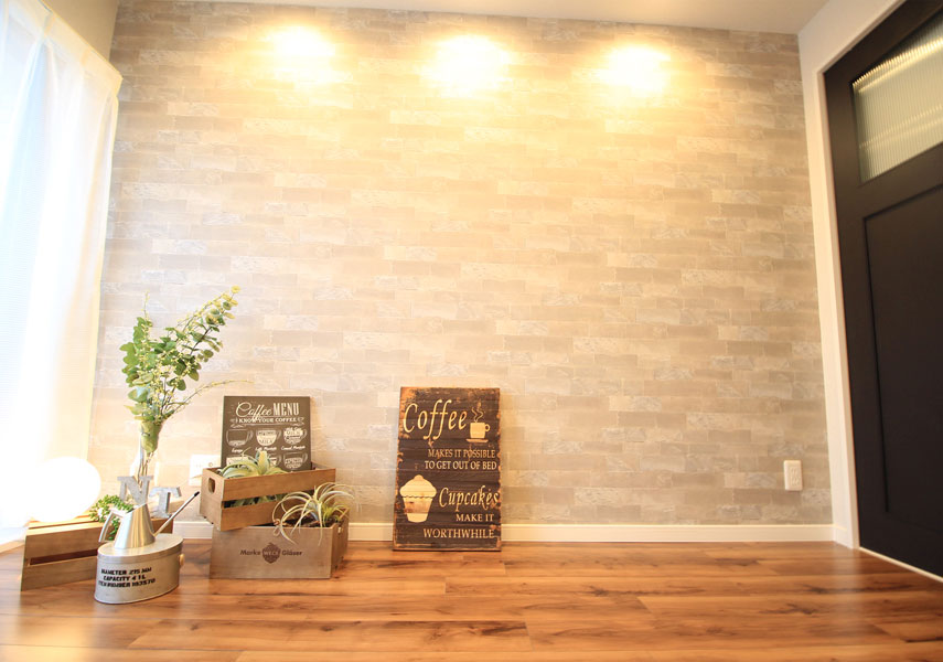 しつこくなりすぎないように、巾木は明るい白、クロスも白で茶色とのコントラストが感じられるようにしました。