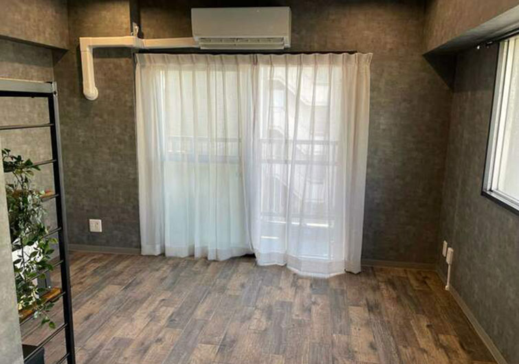 コンクリート調のクロスが生活感を感じさせないクールな空間になりました。