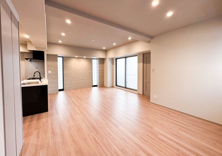 リビングに隣接する和室を取り壊し、開放感のあるLDKに間取り変更をしました。