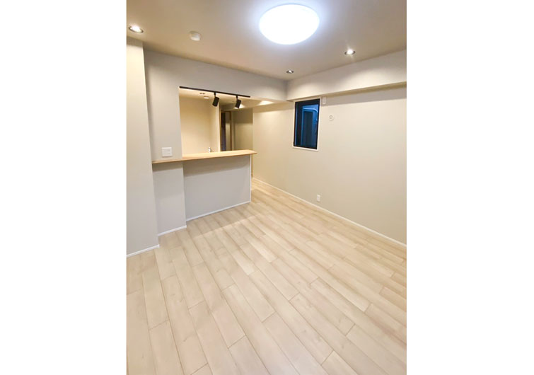 今回のリノベーションでは、建具やフローリングを明るい木目調に一新し、室内全体に柔らかな光が広がる開放的な雰囲気へと生まれ変わりました。