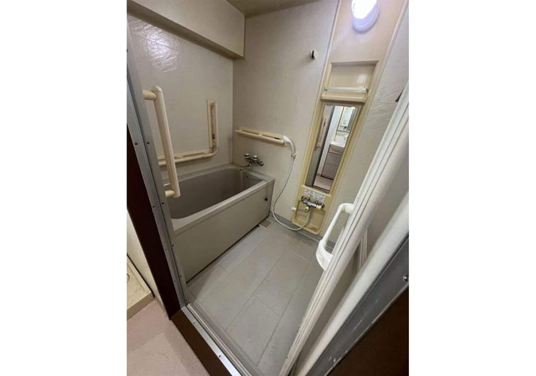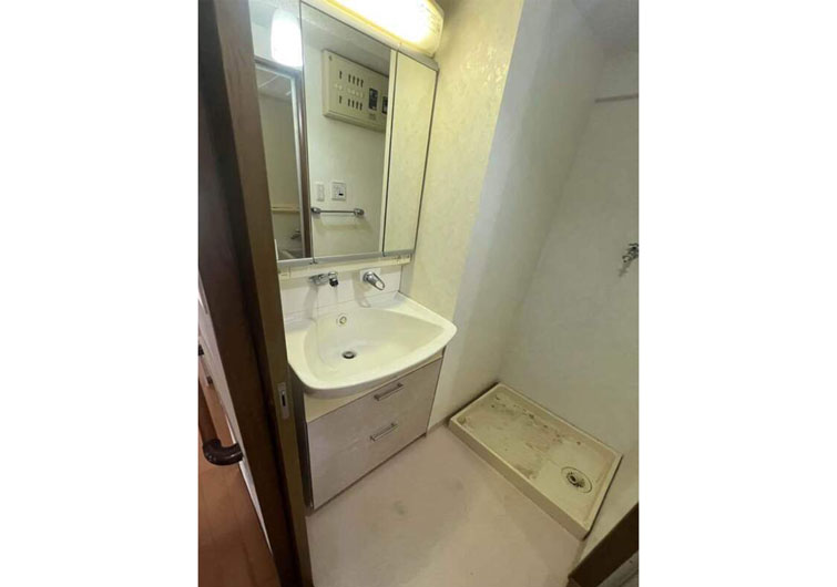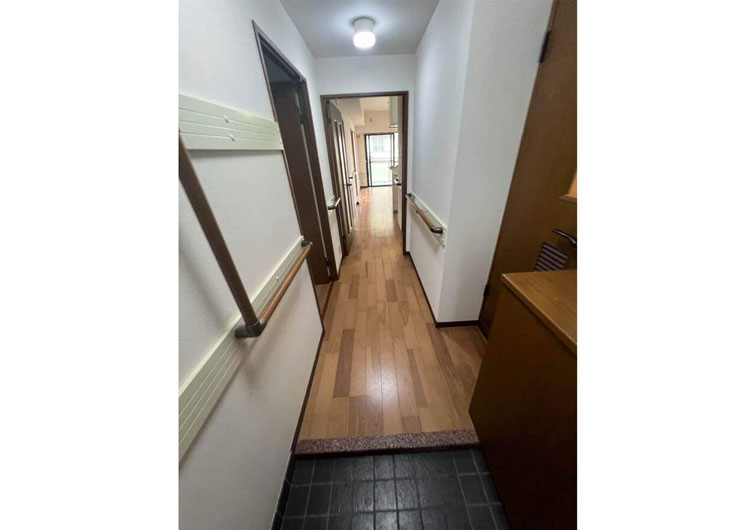 今回のリフォームでは、これまでリビング側にあった浴室・洗面所の扉を、玄関へと続く廊下側へ移動する工事を行いました。リフォーム前は、リビングの一角に水まわりの入口があるため、入浴や洗面の際の音や気配がリビングに伝わりやすく、来客時に生活感が見えやすい点がありました。また、脱衣や入浴の出入りがリビングから見えやすく、家族のプライバシー面でも配慮が必要な間取りでした。