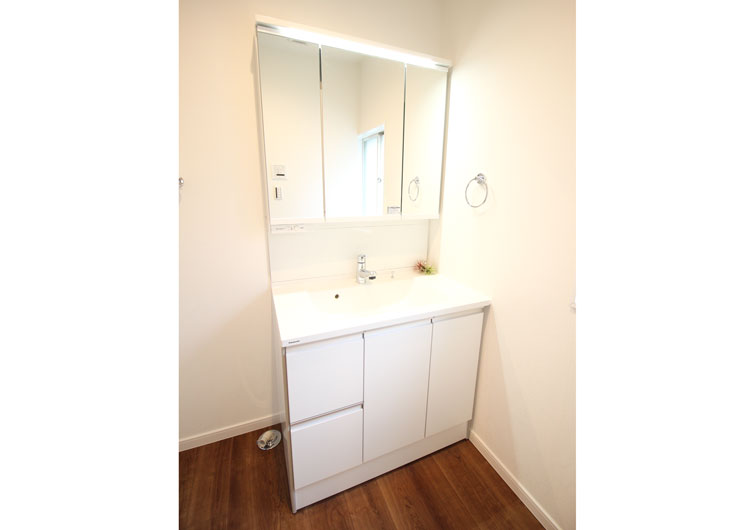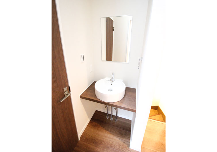 外観は従来の白から鮮やかな青に変更し、素敵な印象に変わりました。1階はダイニングと和室の間の壁を取り払い、リフォーム後はダイニングからリビングが見渡せる開放的な空間になりました。また、キッチンはL型をI型に変更し、壁際にカップボードを設置しました。バスルームは在来浴室からユニットバスに変更しました。狭かった脱衣所は元々、和室にあった押入だったスペースを取り込んで、とっても広くなりました。また、バスルーム、脱衣所ともに、窓付きなので、換気もできます。