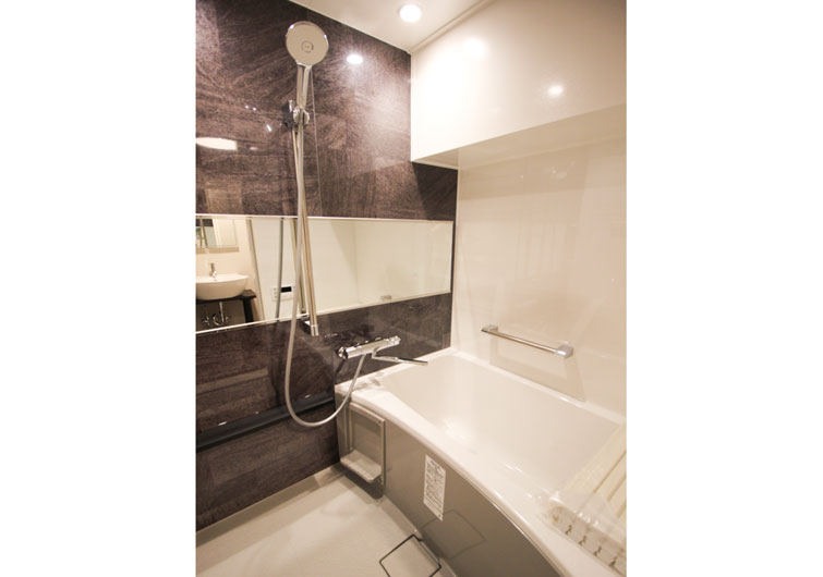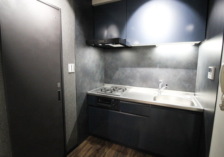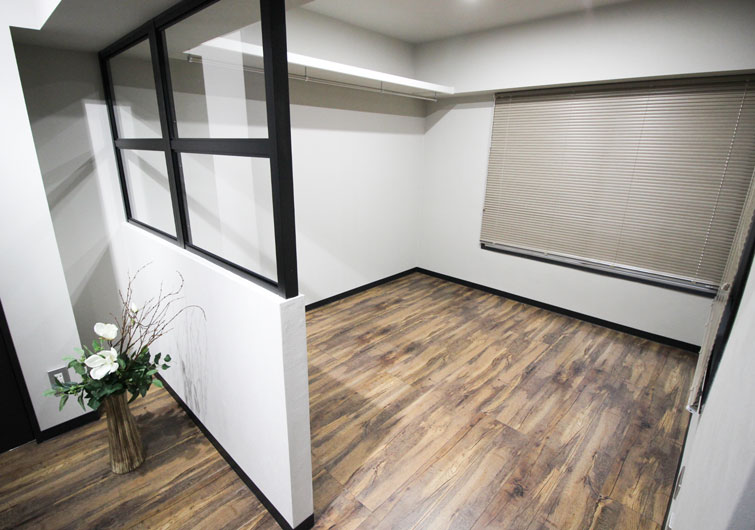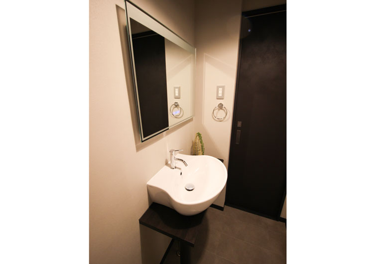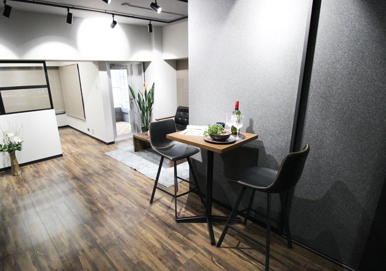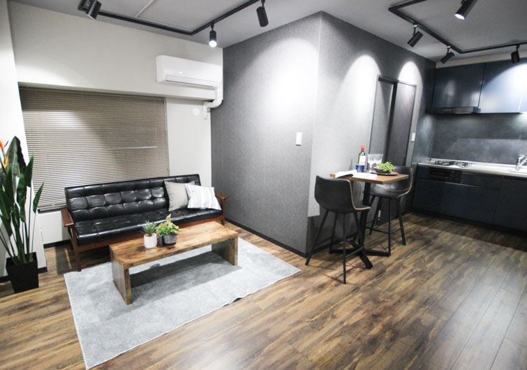 建具や床などに落ち着いたダーク系のカラーを採用。
