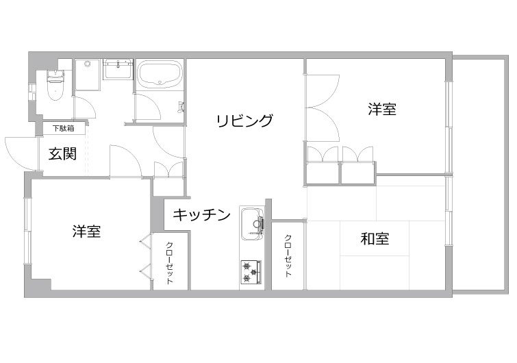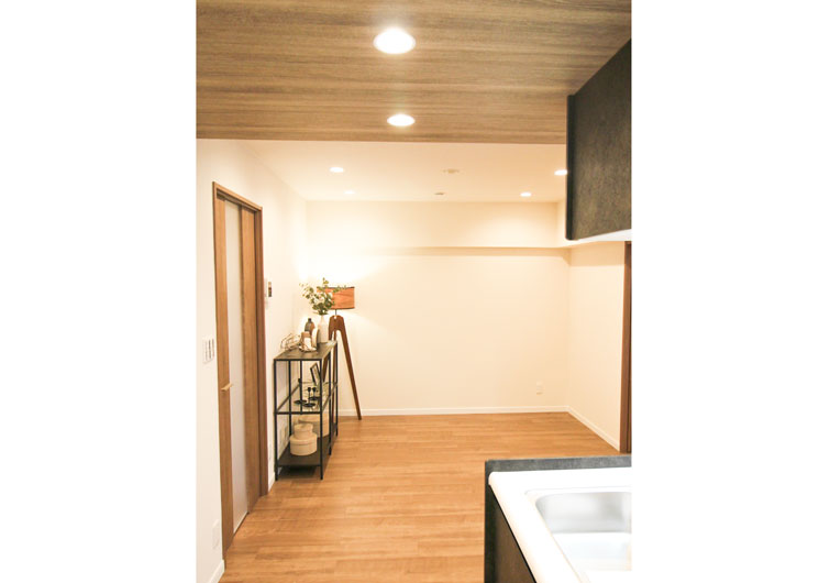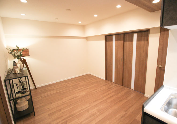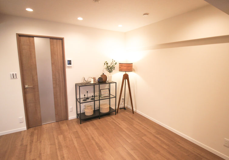 リビングと洋室2の間仕切りを2枚引き込み戸にし、無駄なスペースを無くしました。