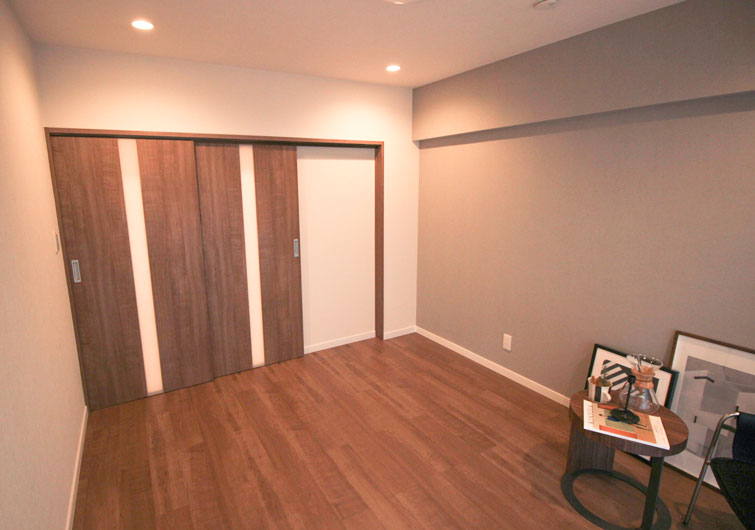 建具と床を柔らかいイメージのブラウン系にした事で、落ち着いた優しい雰囲気になり、あたたかみのある空間になりました。